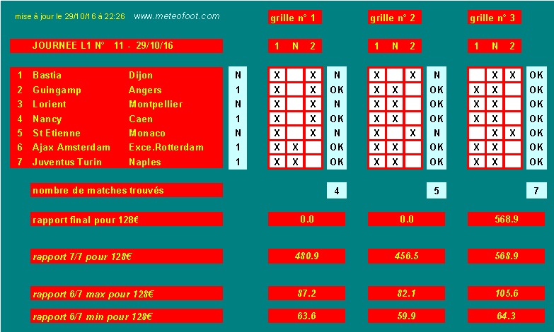 L'Ajax est passé, et ce nouveau combiné 6/7 termine avec 7 bons numéros sur la grille n°3. Le résultat en termes de rapports est un petit peu en retrait par rapport à certaines fois, mais sans commune mesure avec les rendements du Loto Foot 7 sur ce même tirage : le rapport de ce combiné est plus de 5 fois supérieur à celui du Loto Foot 7 ! Ce qui prouve, on n'en doute plus désormais, le caractère "d'assurance vie" pour tous les tirages moyens sans grosses surprises, et sur le Loto foot 7 il y en a quand même pas mal.